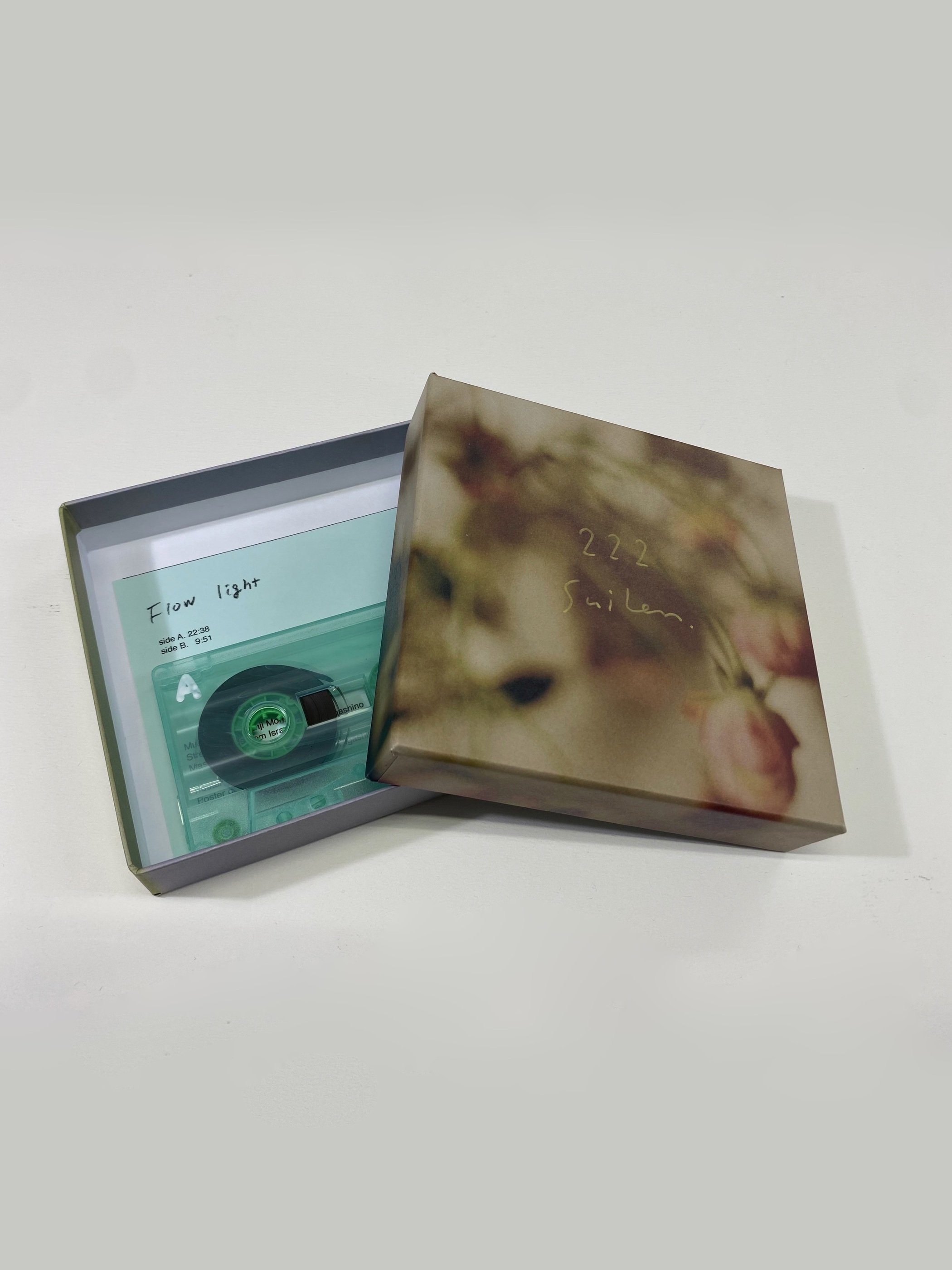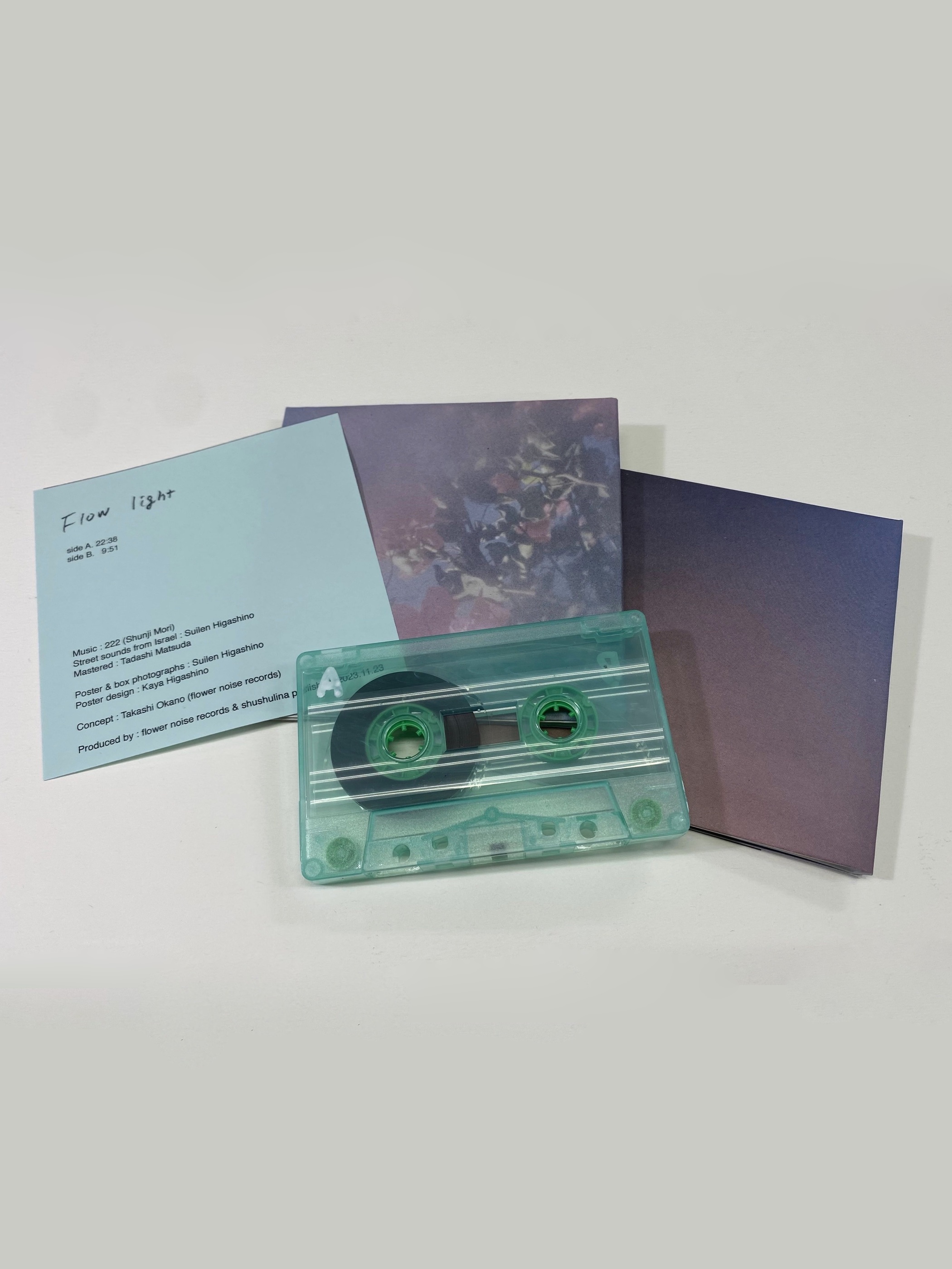 222の森さんのギターが奏でる浮遊する音色。 東野翠れんさんがイスラエルの路上で切り取った、光の粒子の写真。 このカセットテープ『Flow light』は、 二人の共演を、残響の後の静寂まで美しく、音に閉じ込めた。 蛍石 Fluorite のようなカセットが、物語を聴かせる。