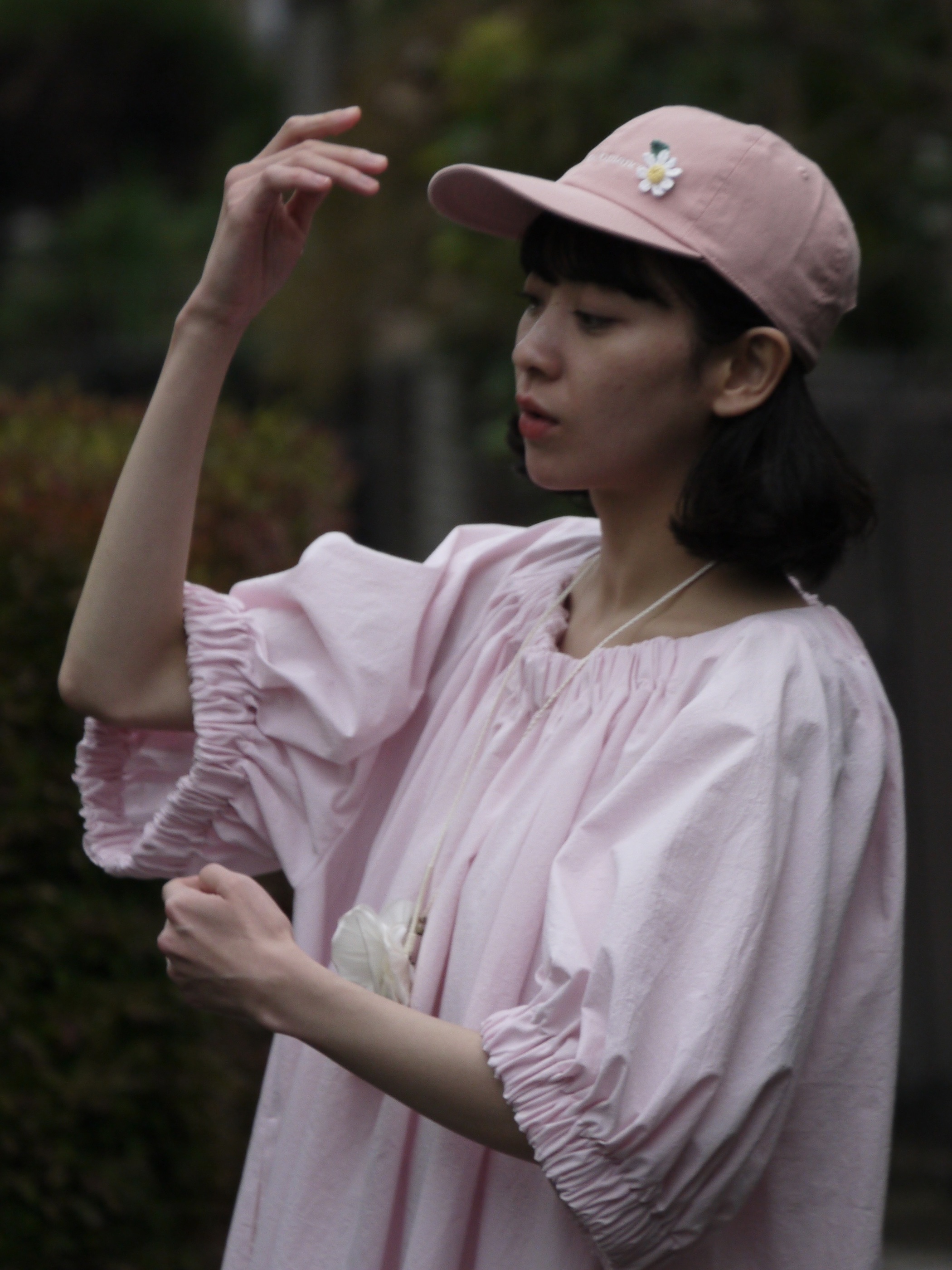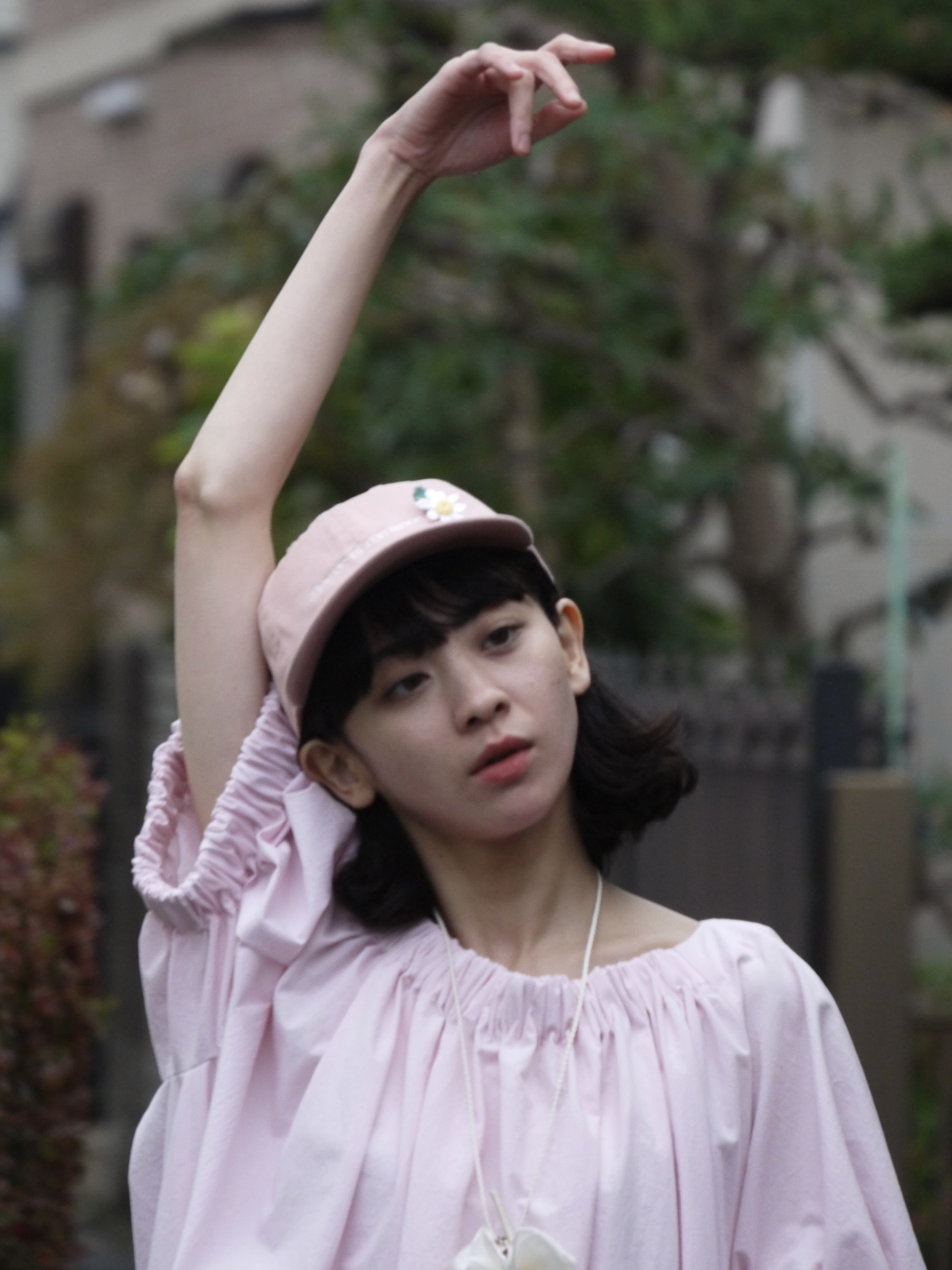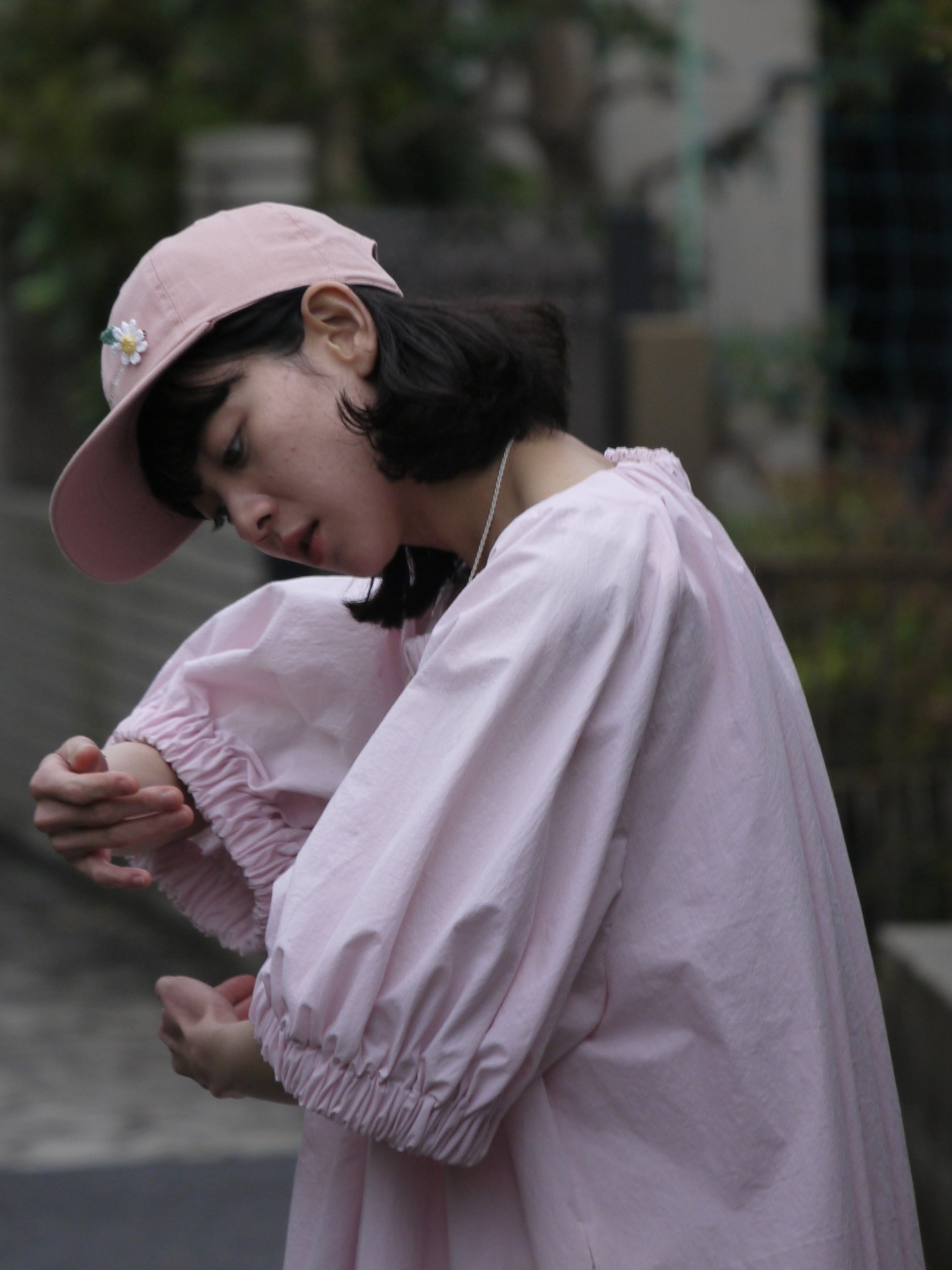 襟ぐりも袖口は広く大きく、裾の分量もあり、動きやすい風通しのいいドレスです