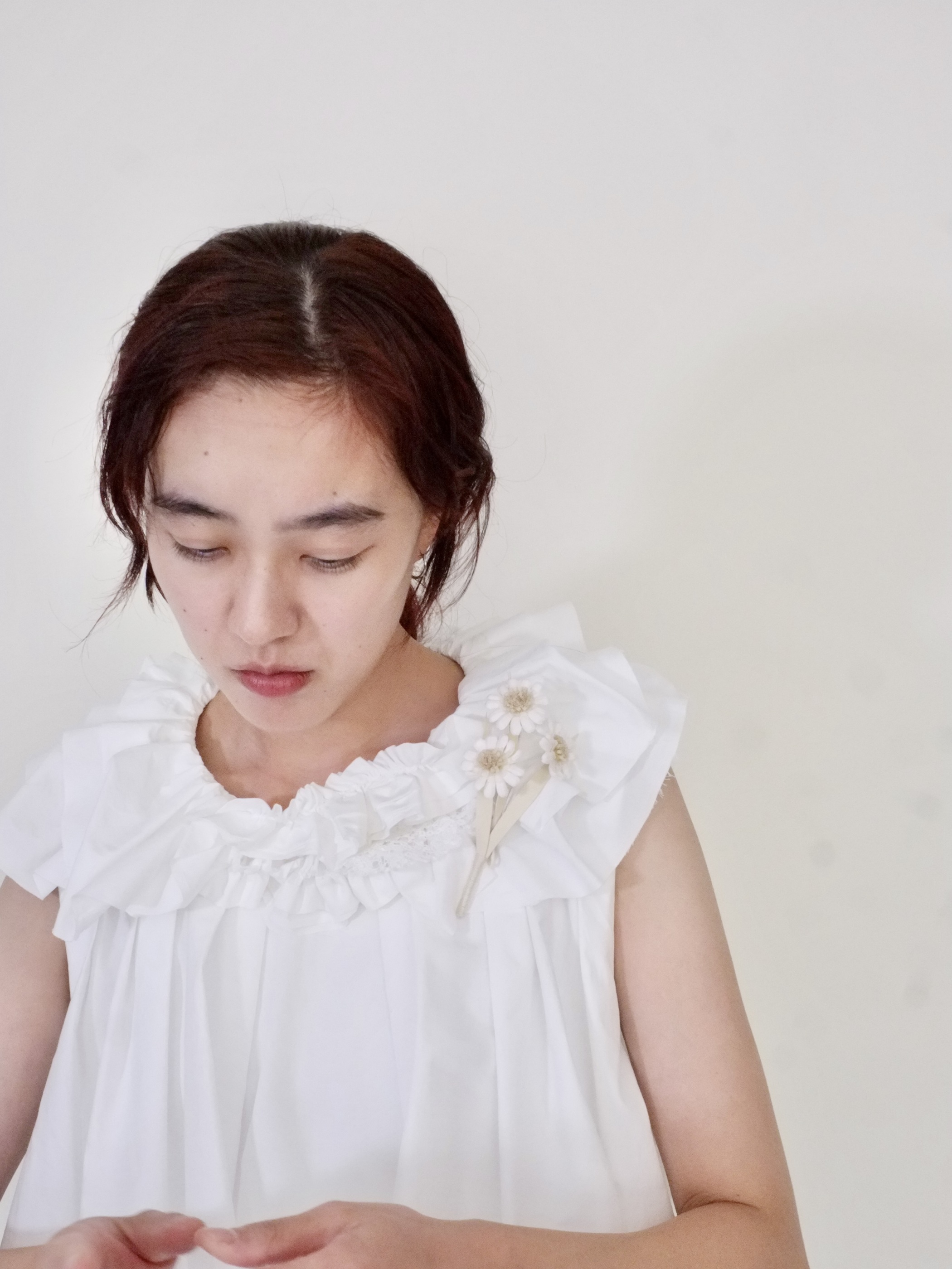 このデイジー・コサージュペンダントは、海を越えた友人との会話から、「日常のアメリカ」という記憶の風景を切り取りました。