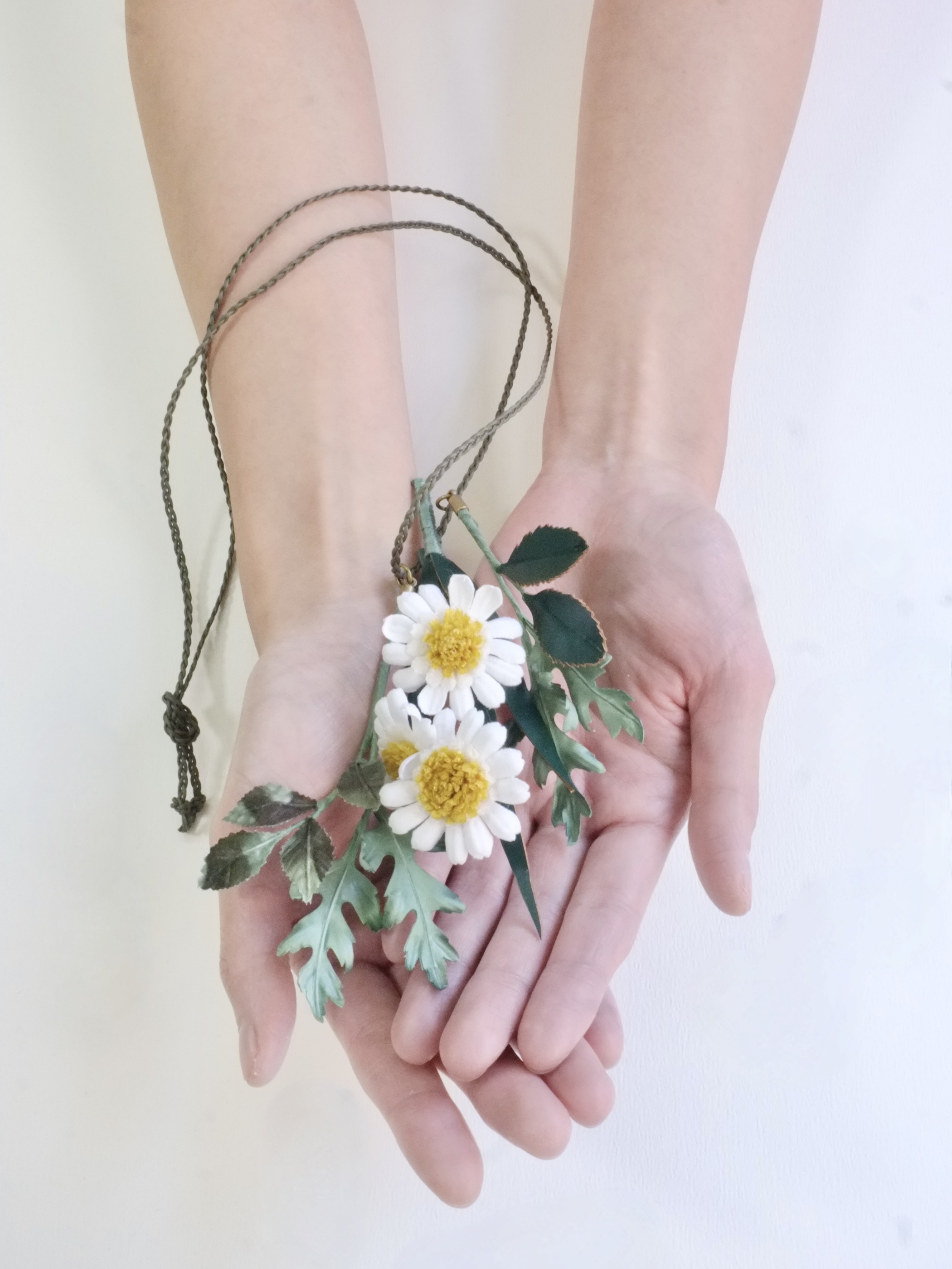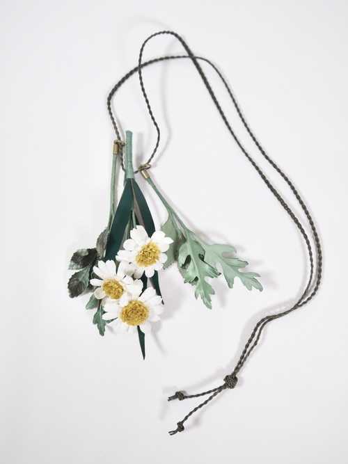 このデイジー・コサージュペンダントは、海を越えた友人との会話から、「日常のアメリカ」という記憶の風景を切り取りました。